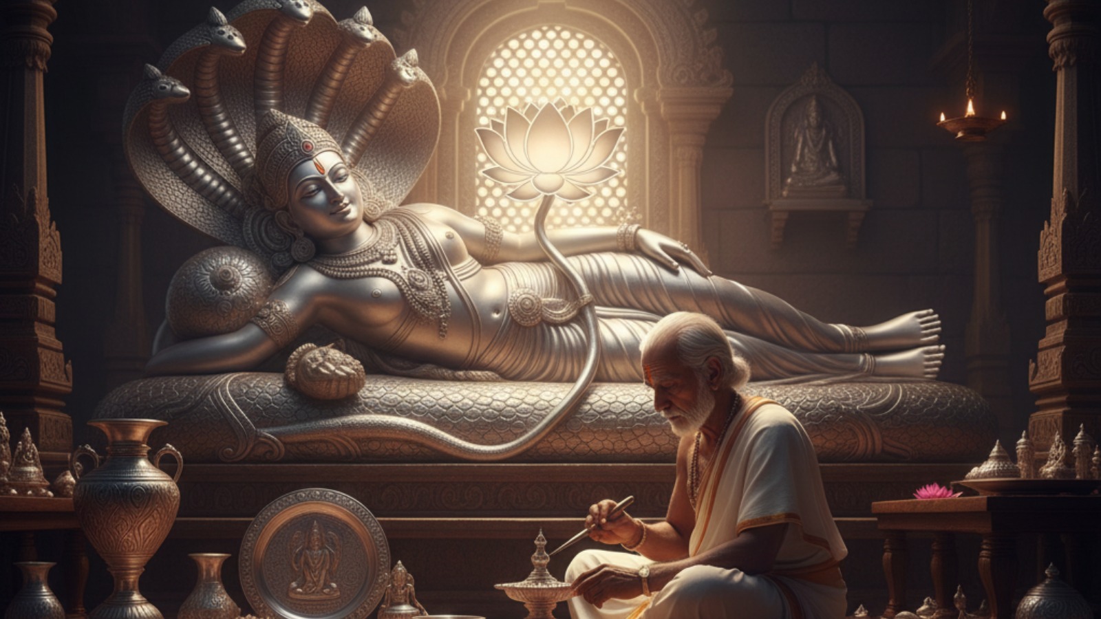 Inspired by Lord Padmanabhaswamy, from whose navel blooms the sacred lotus, we see silver as a form of divine expression – pure, intricate, rooted.